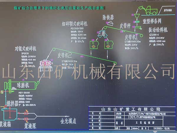為推進(jìn)我國綠色礦山的建設(shè),山東山礦機(jī)械有限公司開發(fā)了采用煤矸石(煤基固廢)處理生產(chǎn)線設(shè)備,把煤矸石經(jīng)輸送-粗破-細(xì)破-粉磨制漿-注漿,最終使合格漿液注入到煤礦井下采空區(qū)進(jìn)行回填,達(dá)到井上無煤矸石存放,避免了矸石山對(duì)環(huán)境造成的污染,無采煤沉陷區(qū),綠色礦山建設(shè)的要求,為建設(shè)綠色礦山作出了創(chuàng)造性貢獻(xiàn)。
